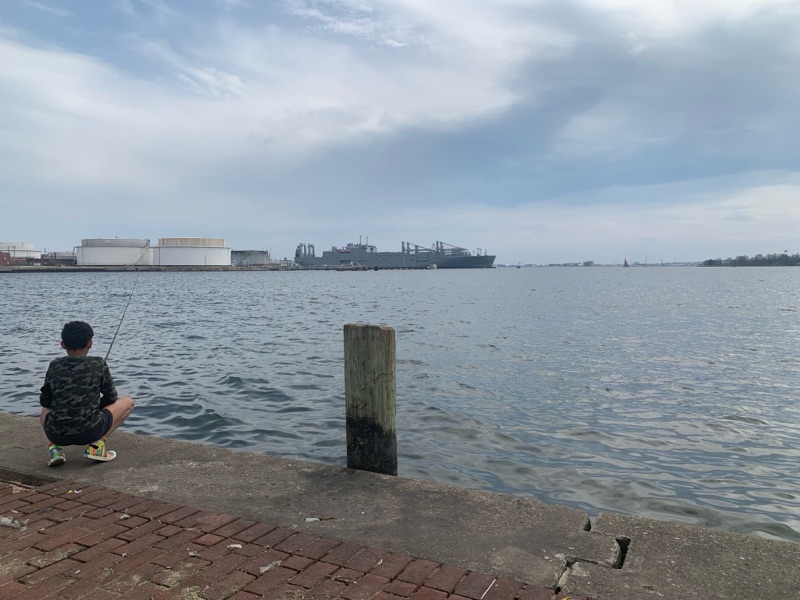 We went to the fishing store in Fells Point for a new rod, then spent a few hours fishing at Canton Waterfront Park.